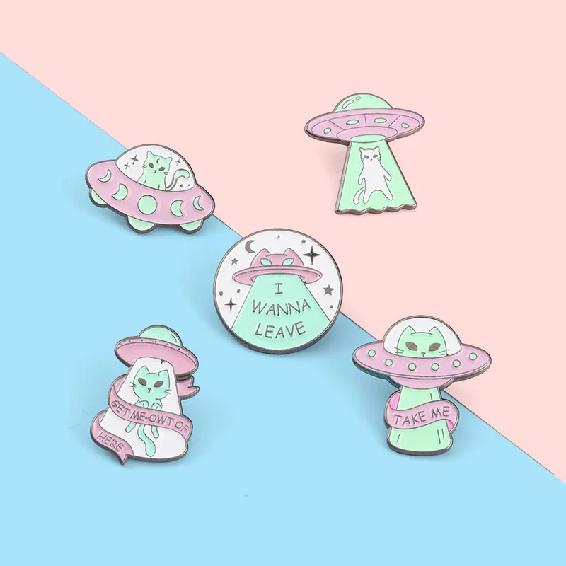Эмалевые броши на лацкан с изображением НЛО, инопланетянина, кошки,...