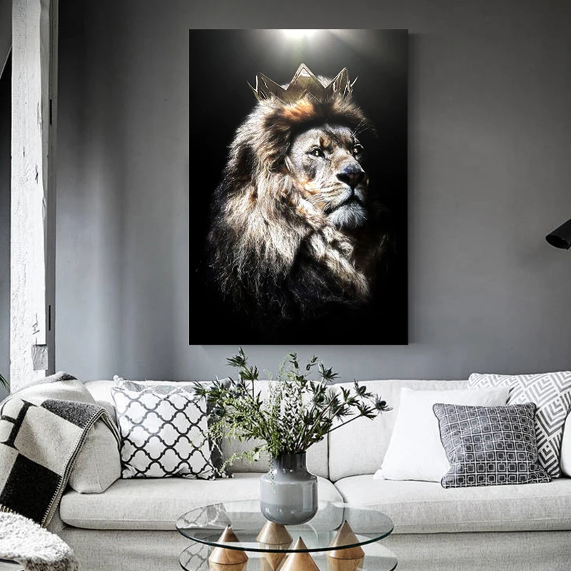 Современные животные искусство Лев с короной картины на холсте постеры и принты настенные художественные картины для гостиной Декор куоры (без рамки)