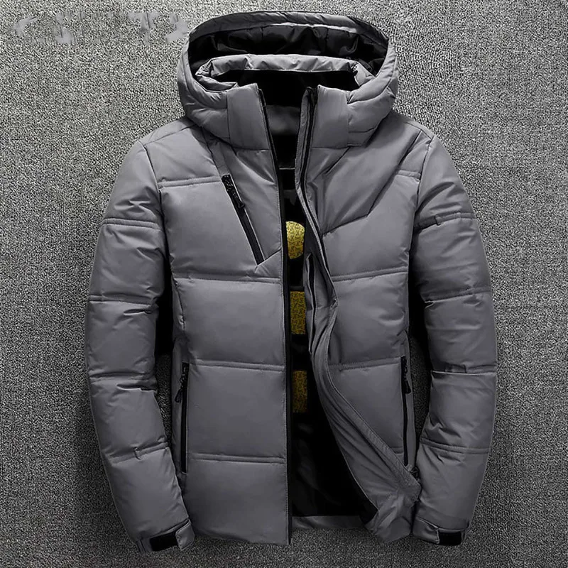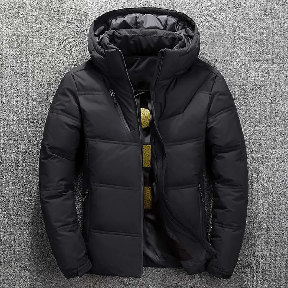 Мужская однотонная куртка на белом утином пуху ZOGAA, теплая Толстая парка с капюшоном, на молнии, верхняя одежда для зимы, 90%