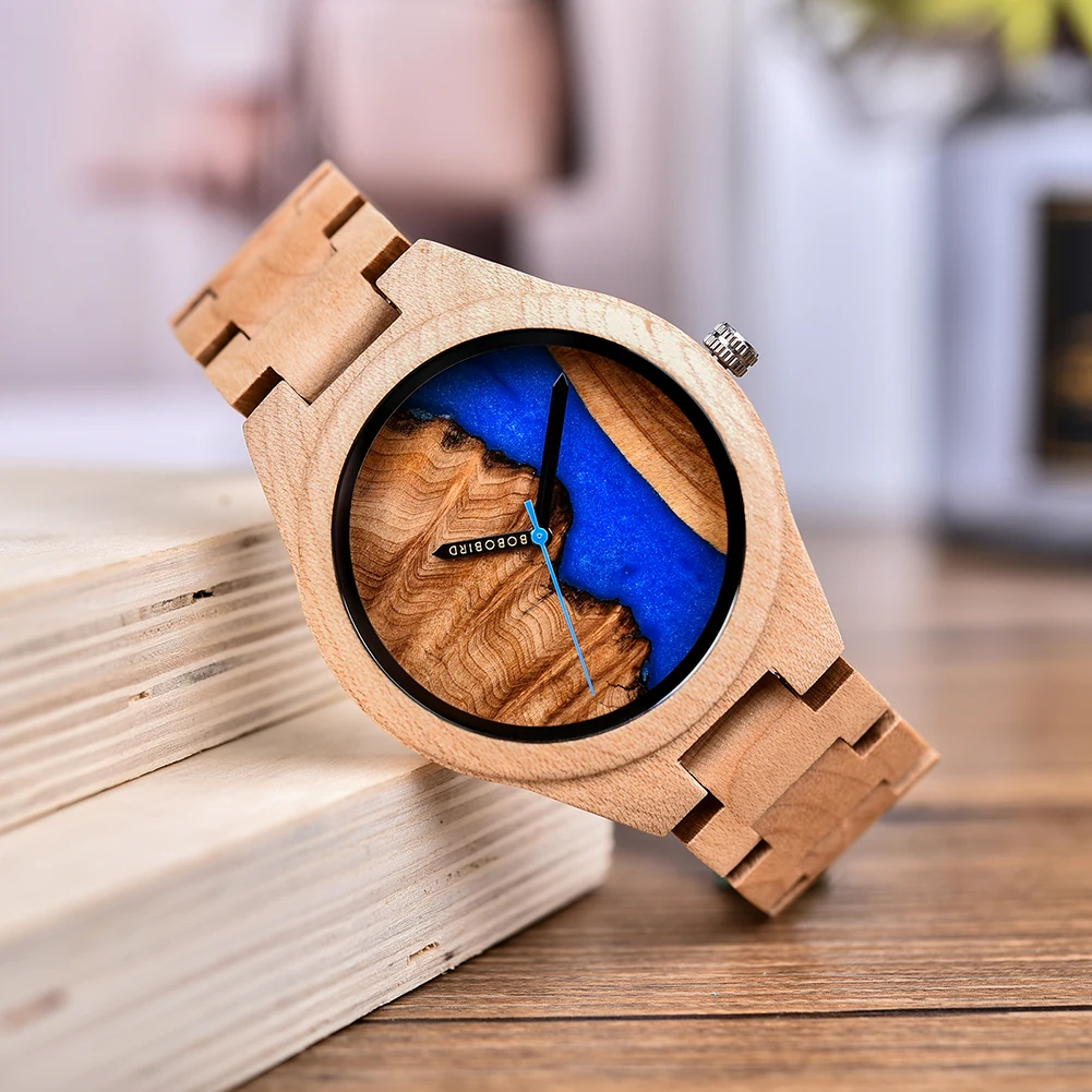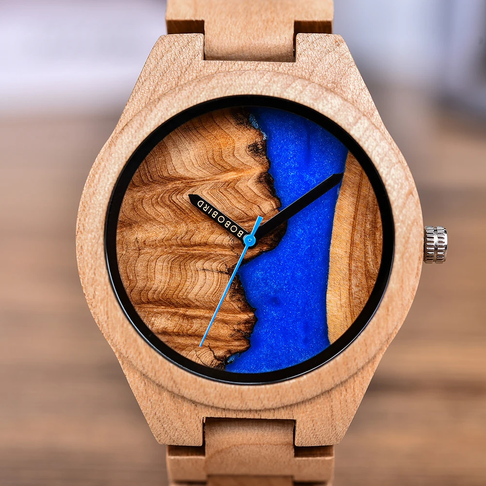 Деревянные часы Relogio MasculinoЖенские ювелирные часыСиняя Смола живопись красочные деревянныеЛоготип под заказ, имя выгравированоЧехол диаметр: мужской: 46,7 мм Женский Мужской: 40,3 ммШирина ремешка: 21 ммДлина ремешка: 230 ~ 242 ммМеханизм: кварцевый механизм MiyotaМатериал зеркала: HardlexМатериал корпуса: деревянные часы