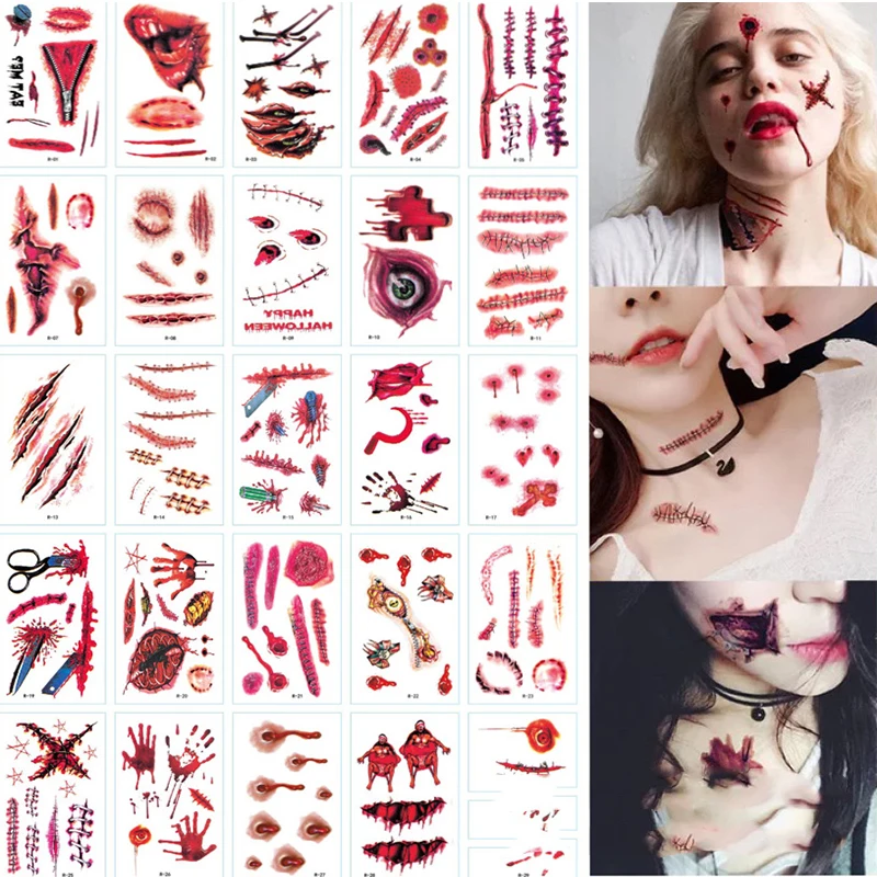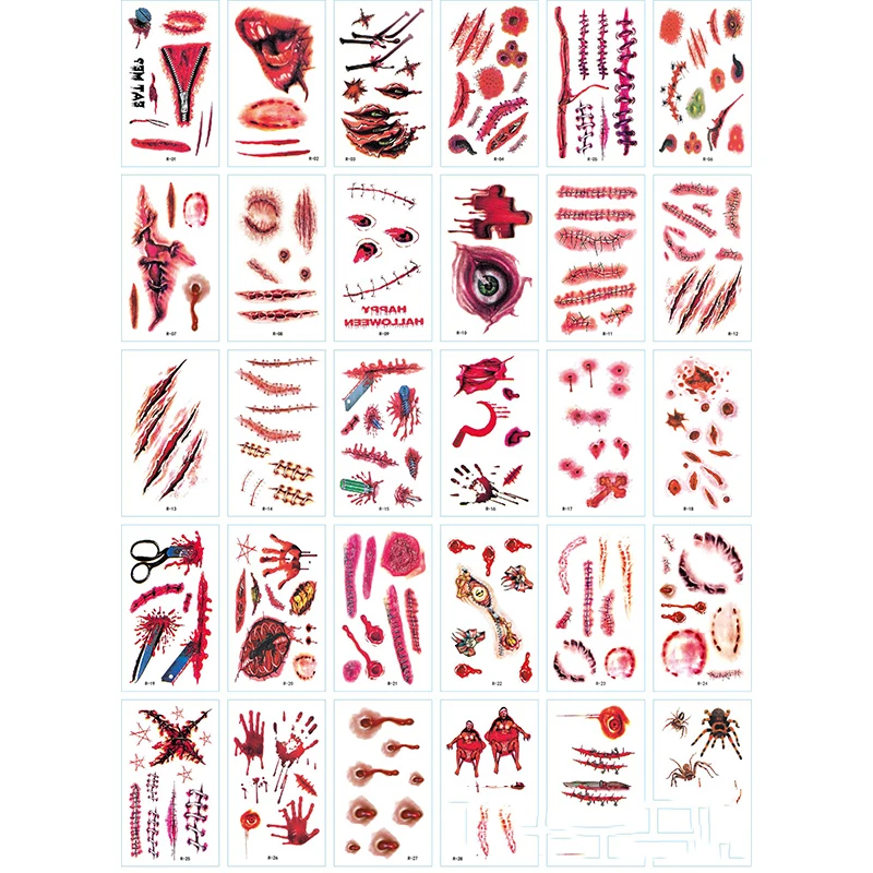 Временные татуировки на лицо и шрам для Хэллоуина, 30 листов, набор...