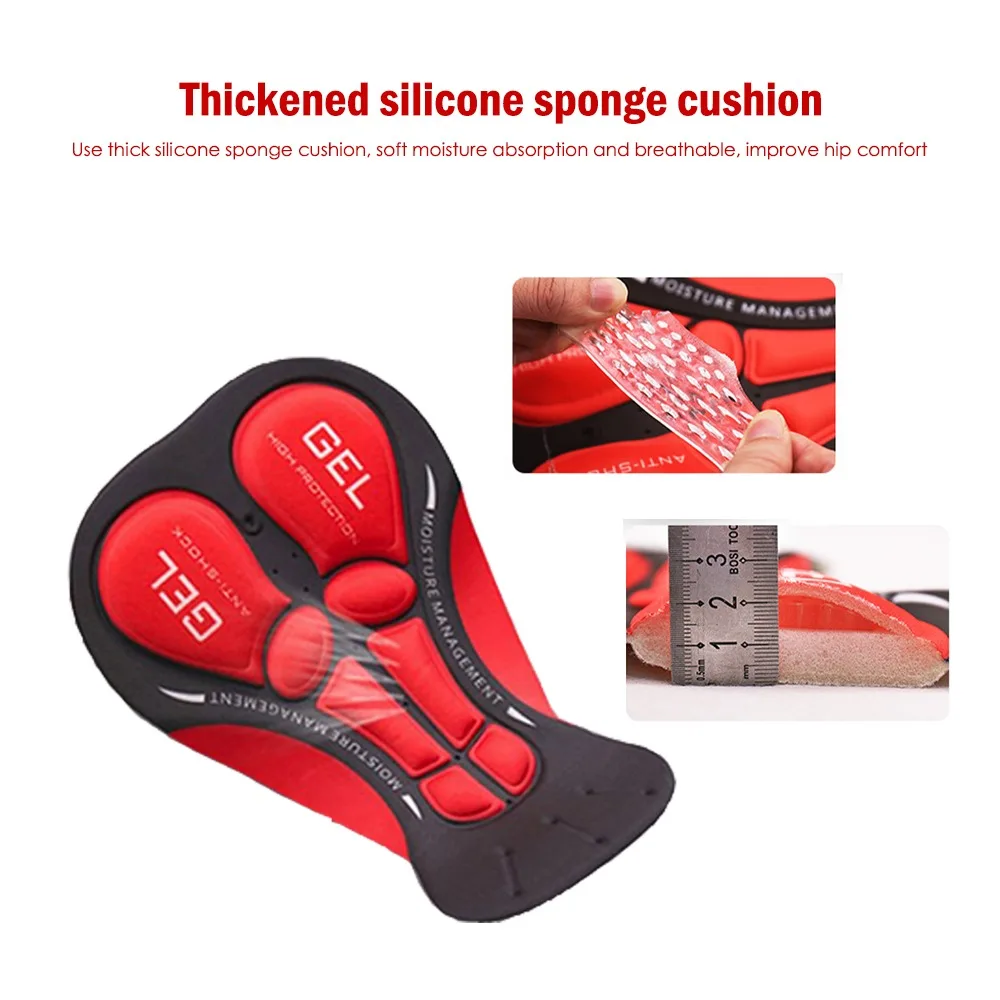 Особенности:-Дышащая ткань быстро отводит влагу и сохраняет прохладу и сухость.-Мягкие и эластичные велосипедные шорты помогают уменьшить раздражение, вызванное натиранием.-Уплотненная гелевая подкладка помогает облегчить боль в бедре, связанную с длительным циклом езды для женщин.-Не легко выцветает, ткань приятная для кожи, мягкая, весит светильник и хорошая эластичность.-Подходит для длительной и короткой езды, легкой езды по пересеченной местности, короткой дистанции и т. д.