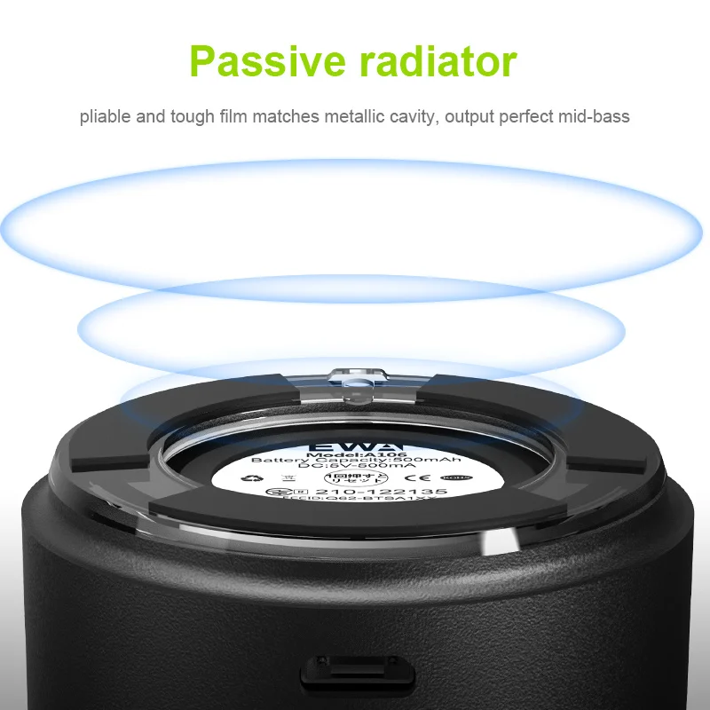 Ранее самой большой болевой точкой колонок маленького размера была слабость басов. В таком крошечном пространстве нам нужно было добавить драйвер, аккумулятор и все электронные компоненты внутри. Кроме того, благодаря нашей инновационной технологии, динамик EWA A106Pro был оснащен пассивным радиатором, поэтому он выпустил такие удивительные басы, что также нужно было подходить.