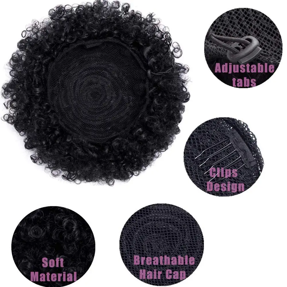 Короткая пуховка афро пучок из синтетических волос шиньон для волос...