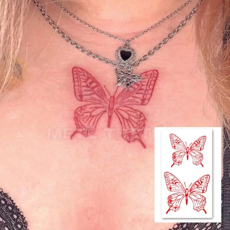 Водостойкая Временная тату-наклейка, красная бабочка, узор, руки, з...