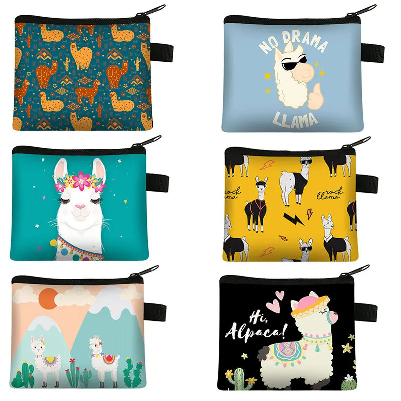 Кошелек для мелочиАльпака с забавными животными, Женский мини-кошел...