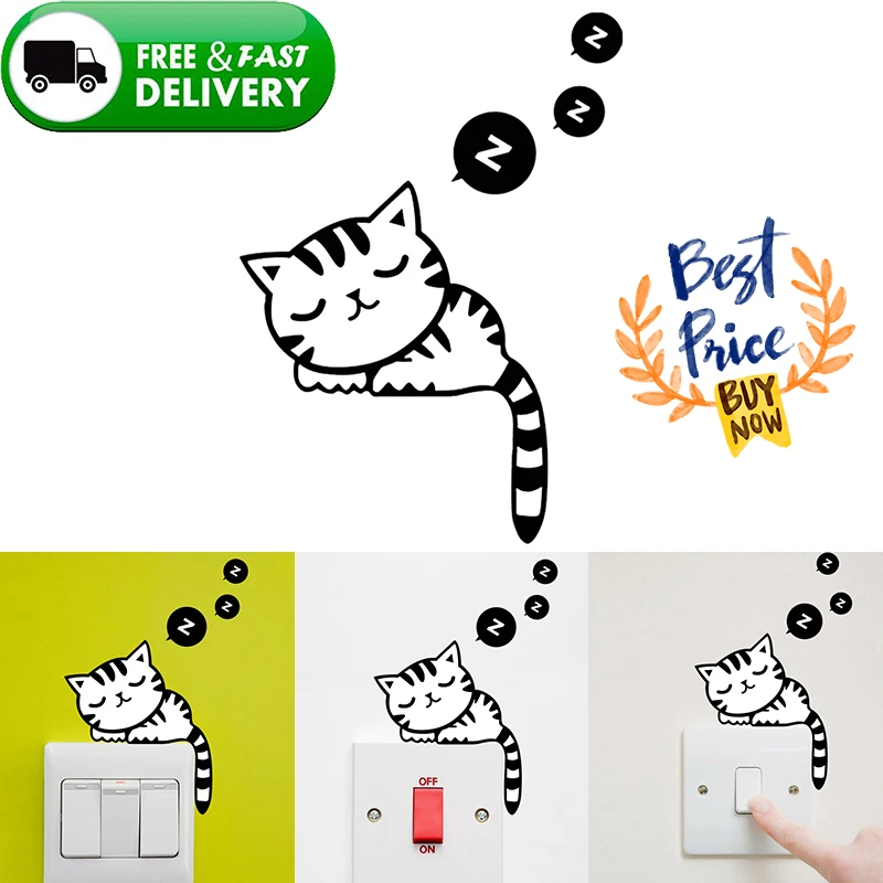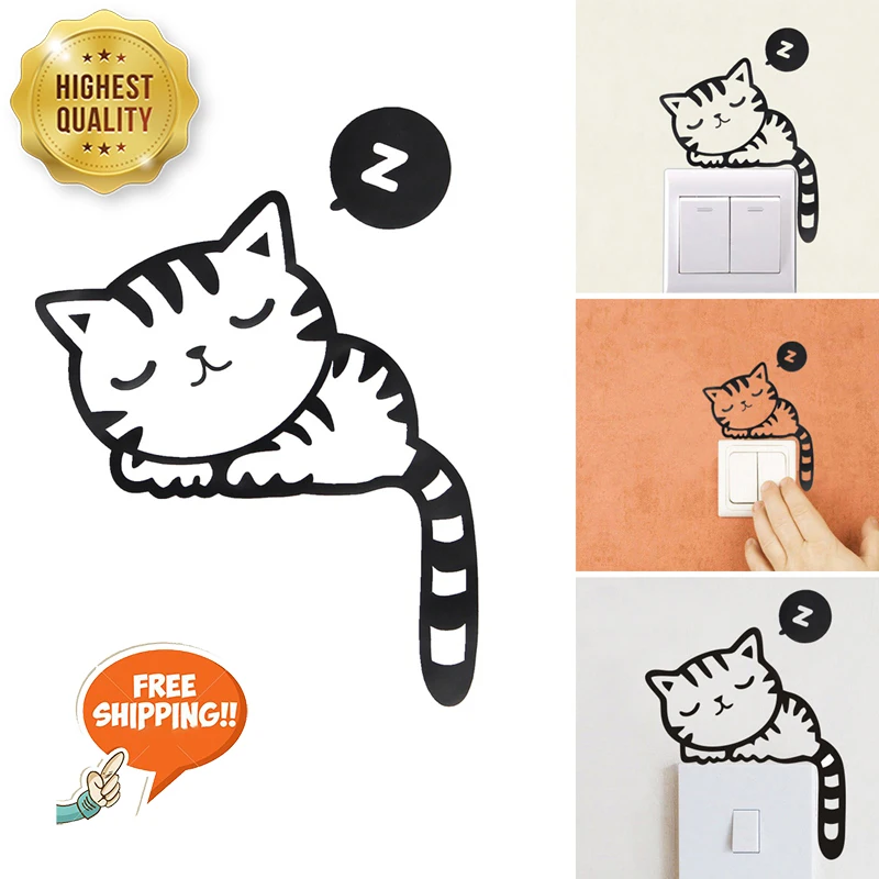Наклейка на стену для дома, 1 шт., настенный стикер для выключателя, мультяшный Кот, спящий, наклейка для дома, ПВХ, наклейки для гостиной, украшение, черный, Забавный