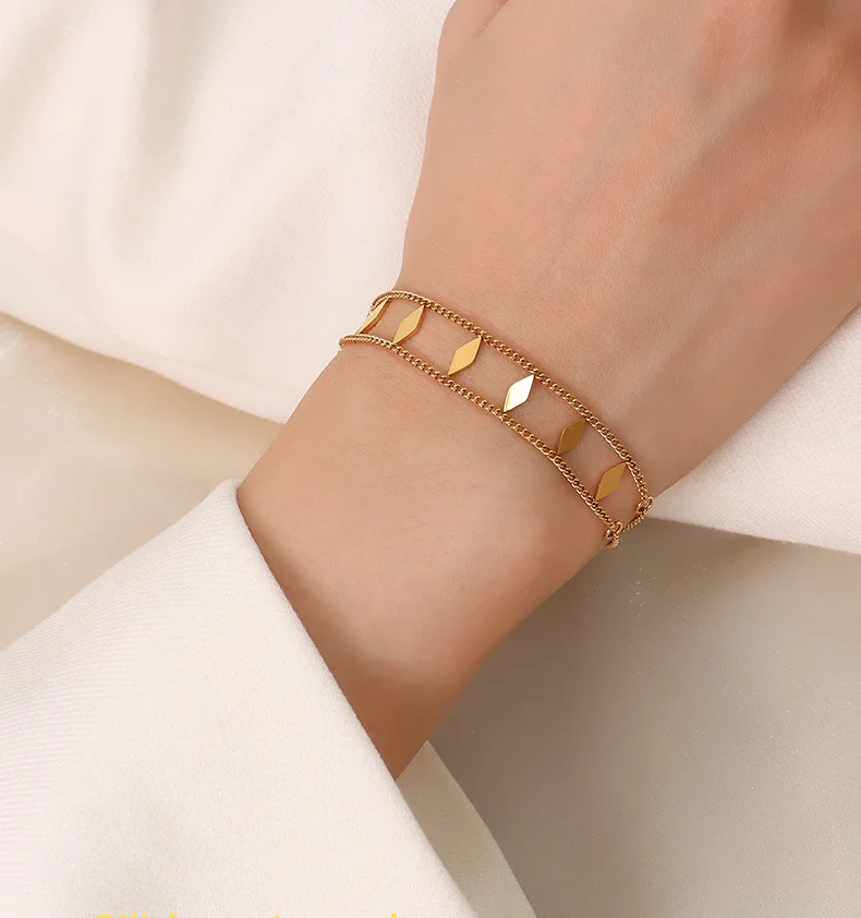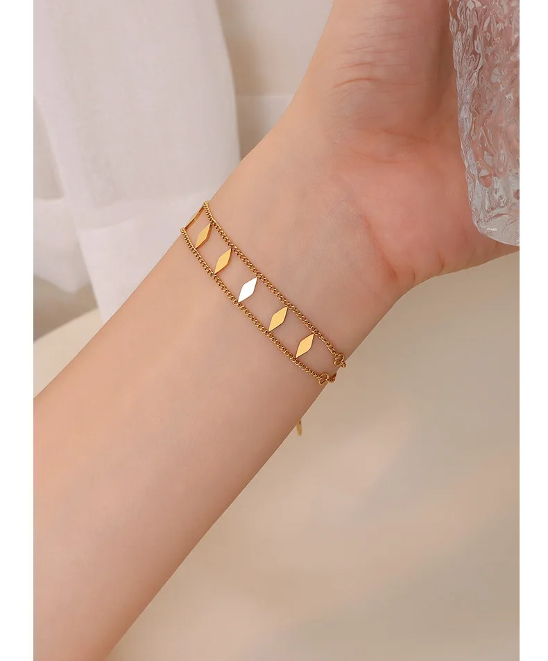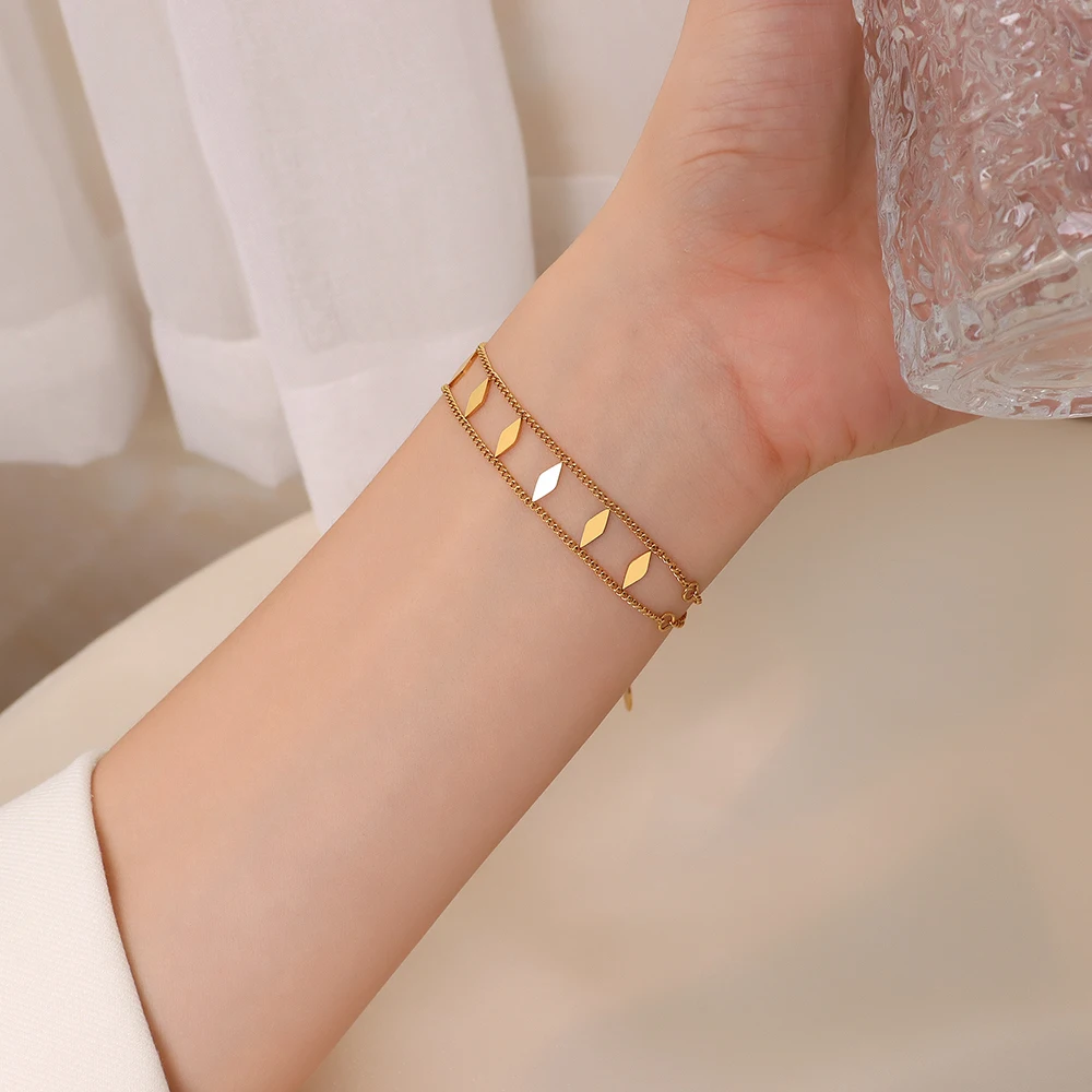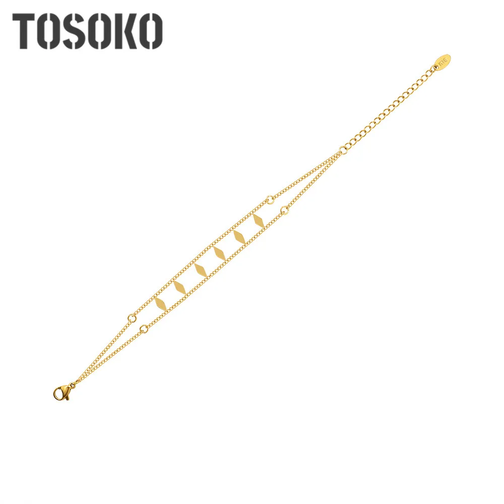 Женский двухслойный браслет TOSOKO, браслет из нержавеющей стали с геометрическим орнаментом, 18 К золотистого цвета, E262