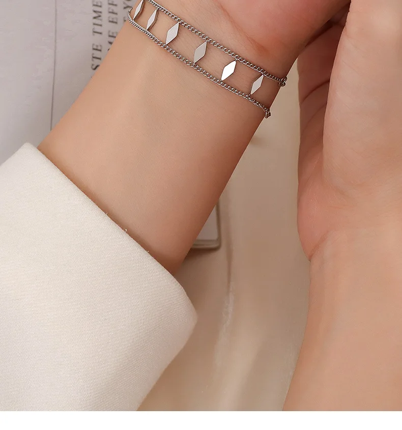 TOSOKO Маленький Длинный сливочный браслет из нержавеющей стали, юв...