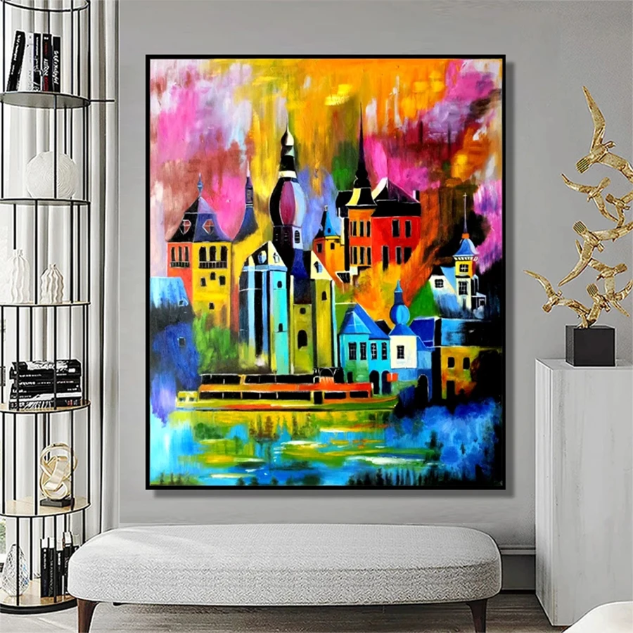 Алмазная вышивка с квадратными и круглыми стразами, абстрактная картина 5D сделай сам с изображением цветного замка, мозаика для вышивки крестиком