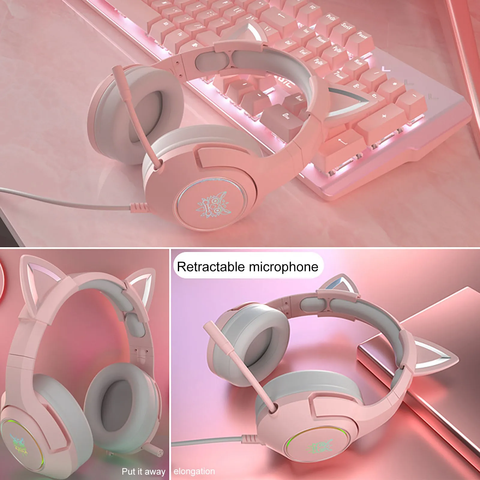 ONIKUMA K9 игровая гарнитура casque Cute Girl Pink Cat Ear Stereo, наушники с микрофоном светодиодный светильник кой для ноутбука, компьютера, геймера