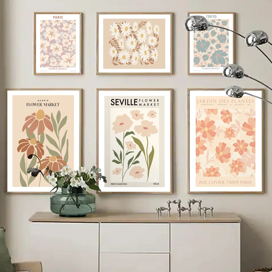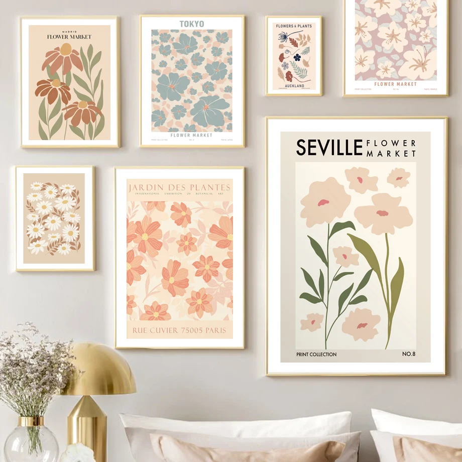 Абстрактные настенные художественные картины на холсте, цветочный рынок Лондона, Токийского Парижа, скандинавские плакаты и принты, настенные картинки для декора гостиной