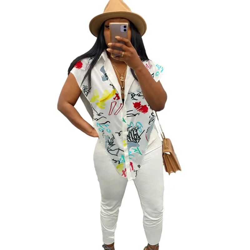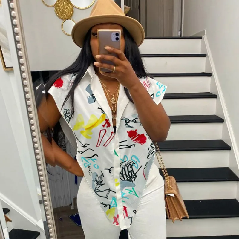 Комплект из двух предметов, женские топы неправильной формы с принт...