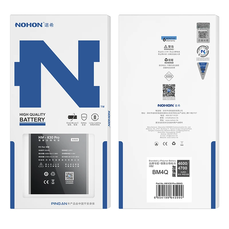Аккумулятор NOHON BM4Q BM47 BM3L BM3M BM4E BM4F BM4H BM4P BP40 BP41 BN30 BN34 BN42 BN46 для Xiaomi Redmi K30 K20 Pro Mi POCO F2 Pro