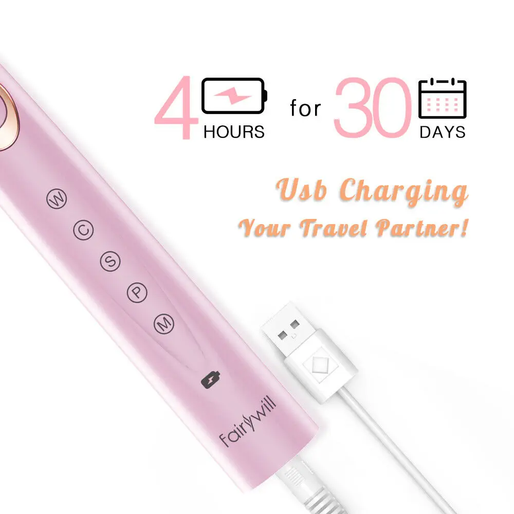 Электрическая зубная щетка Fairywill, таймер для зубной щетки IPX7, водонепроницаемая, 4 часа быстрой зарядки