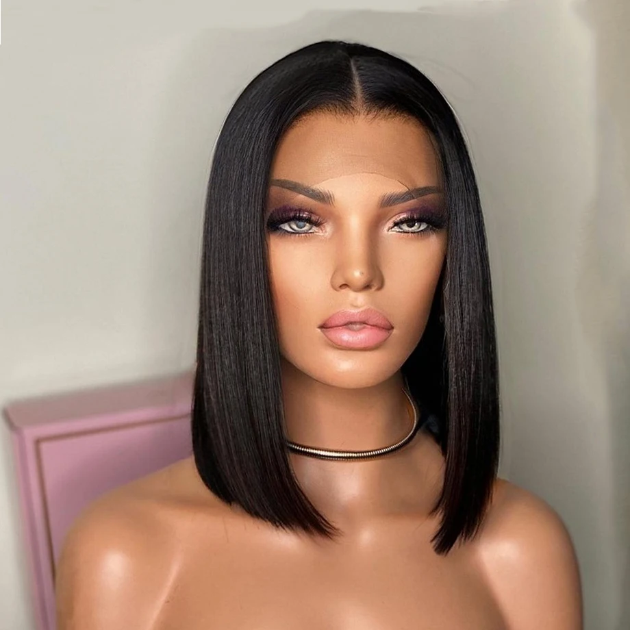 Парики боб из натуральных волос, прямые парики средней длины, парик...