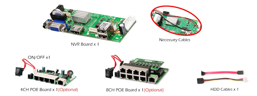 Информация о посылка:1: 4CH или 8CH POE плата x12: кабели для контактных плат x13: плата NVR x14: кабель HDD x1(Эта ссылка не включает Пульт дистанционного управления, пульт дистанционного управления и адаптер питания)