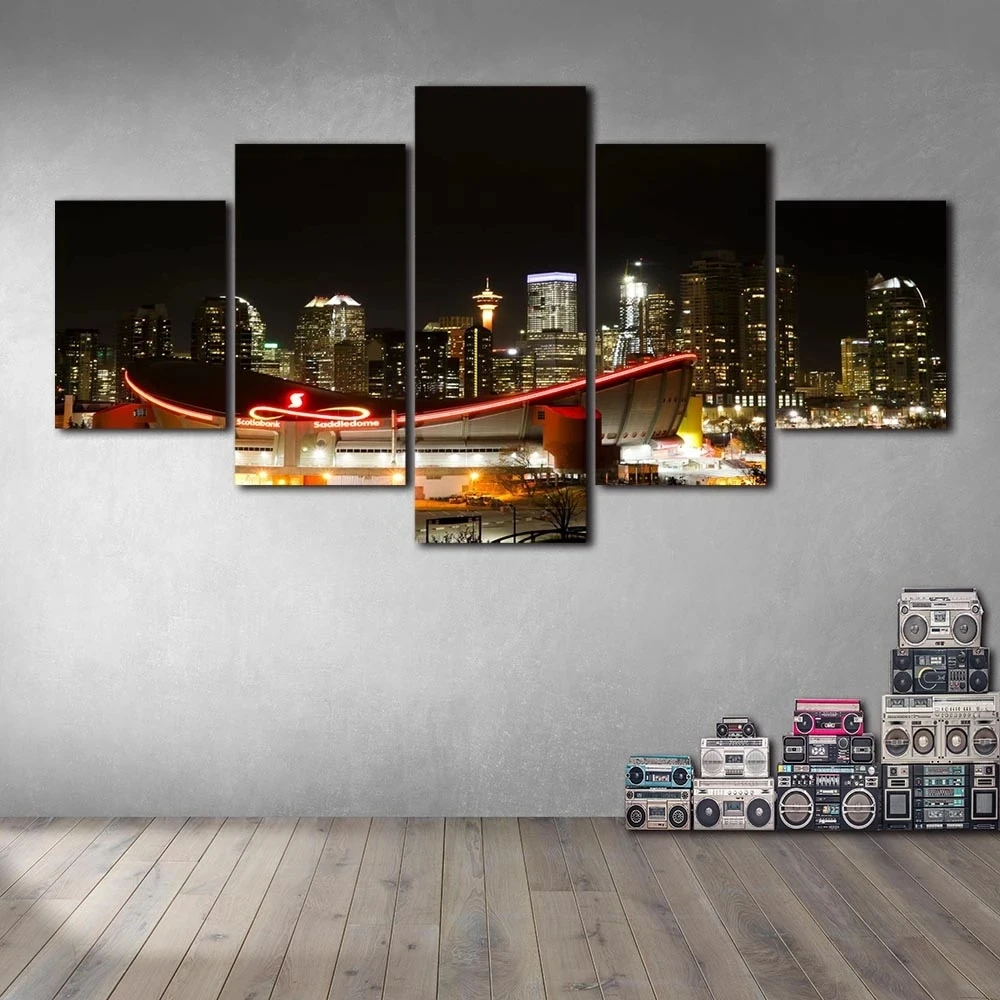 Модульный Холст 5 шт. здание высотой город ночной вид плакат картина современная картина на стену живопись бидом домашний Декор без рамки принты