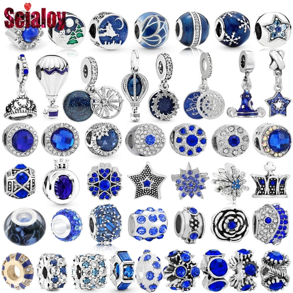 Seialoy 2 шт. темно-синяя звезда Луна из бисера ледяное голубое звездное небо висячее очаровательное Корона Подвеска для брендовых браслетов Сделай Сам Изготовление ювелирных изделий