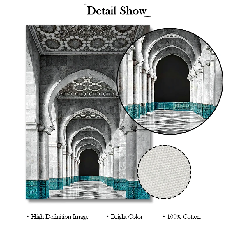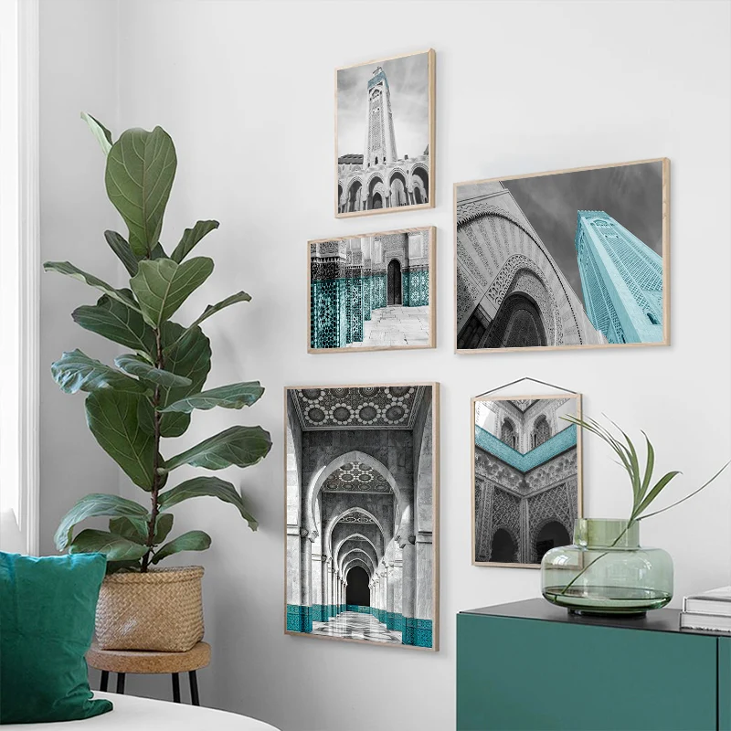 Марокканская АРКА, холст, живопись, исламские здания, настенный плакат, мечеть сабр Бисмиллах, печать, Арабский мусульманский декор, картина