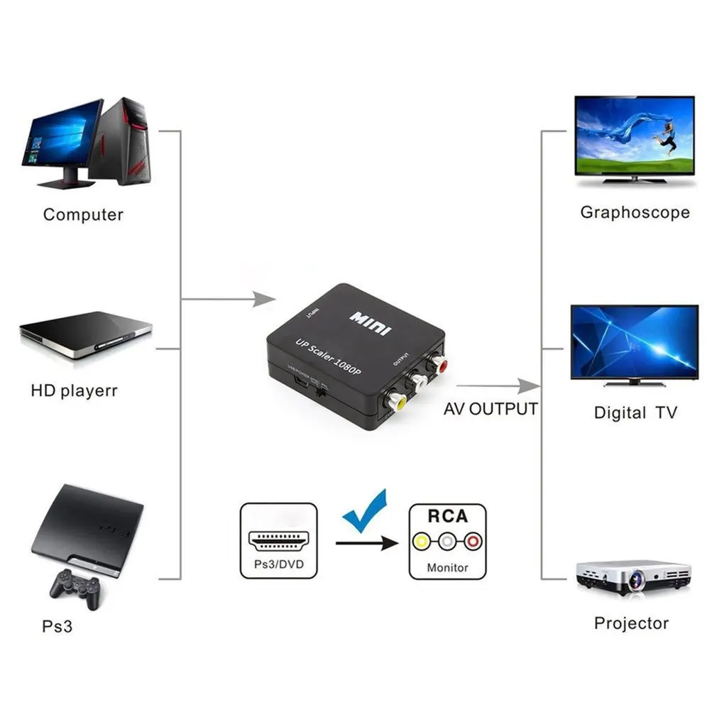 Портативный размер Черный RCA AV в HDMI-совместимый конвертерадаптер подходит для Nintendo для Sega для генов для NES для SNES N64