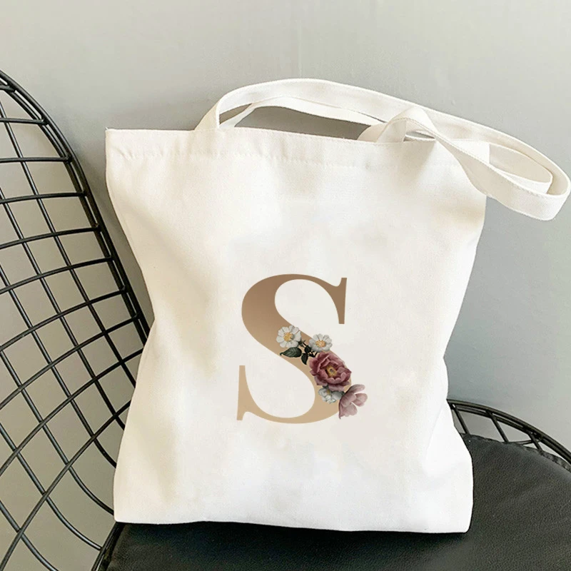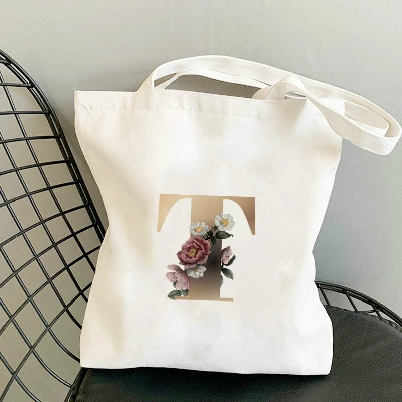 Сумки для покупок с цветочными буквами, настраиваемая тканевая сумк...