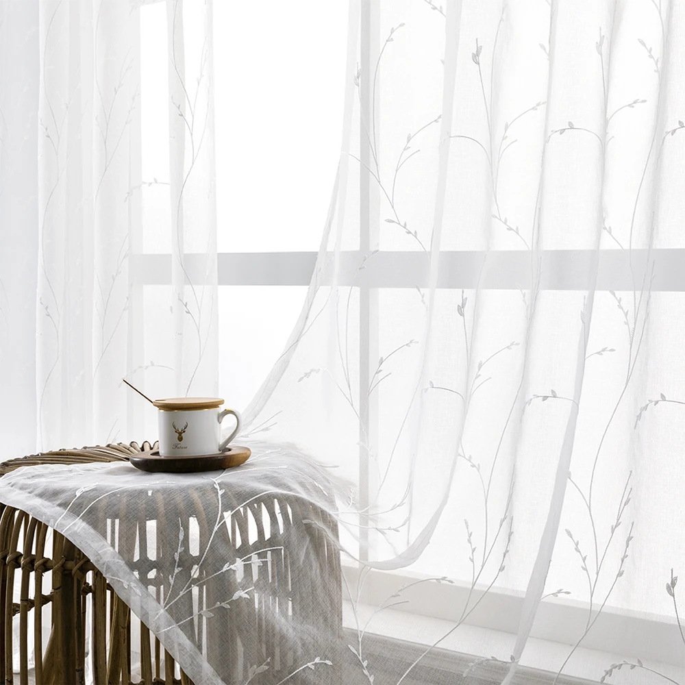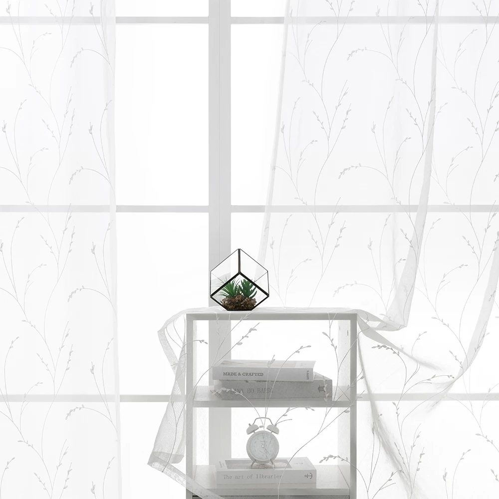 Тюлевые шторы MRTREEES с вышивкой в виде листьев для гостиной, кухн...