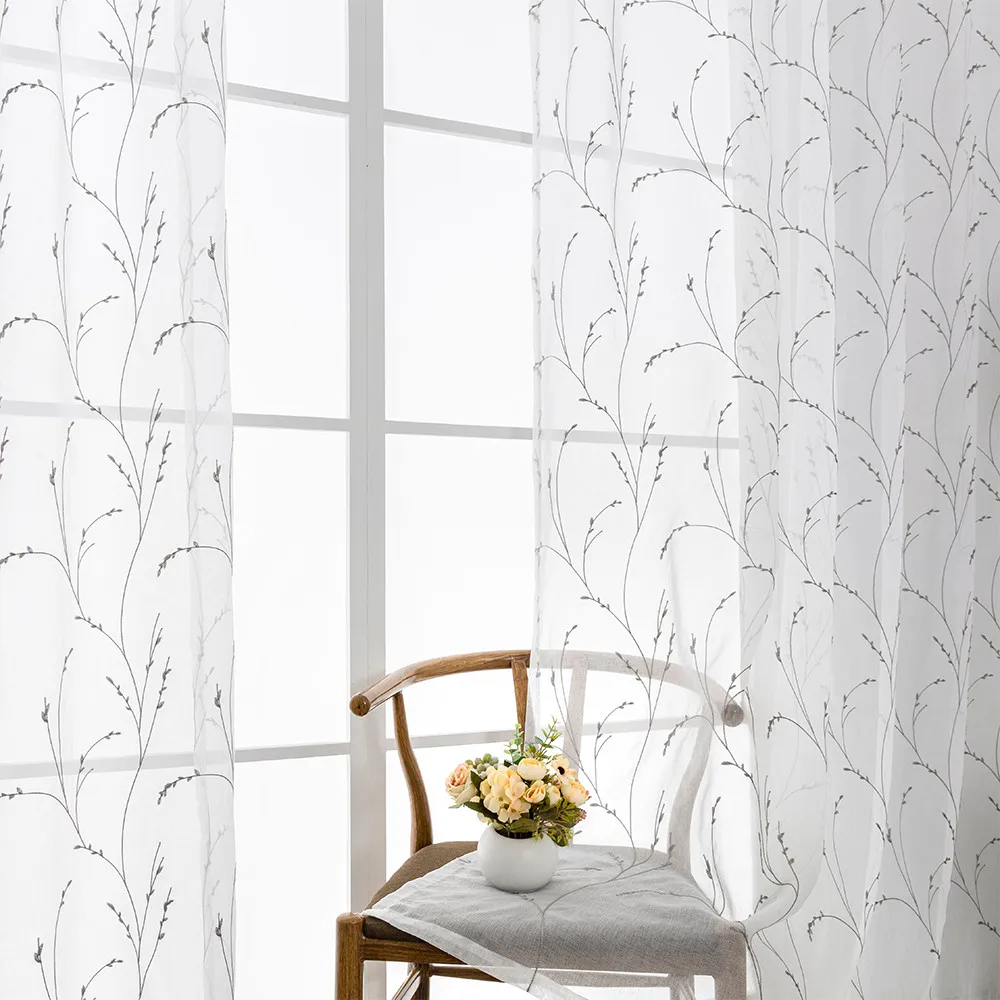 Современные прозрачные Занавески с вышивкой в виде листьев для гост...
