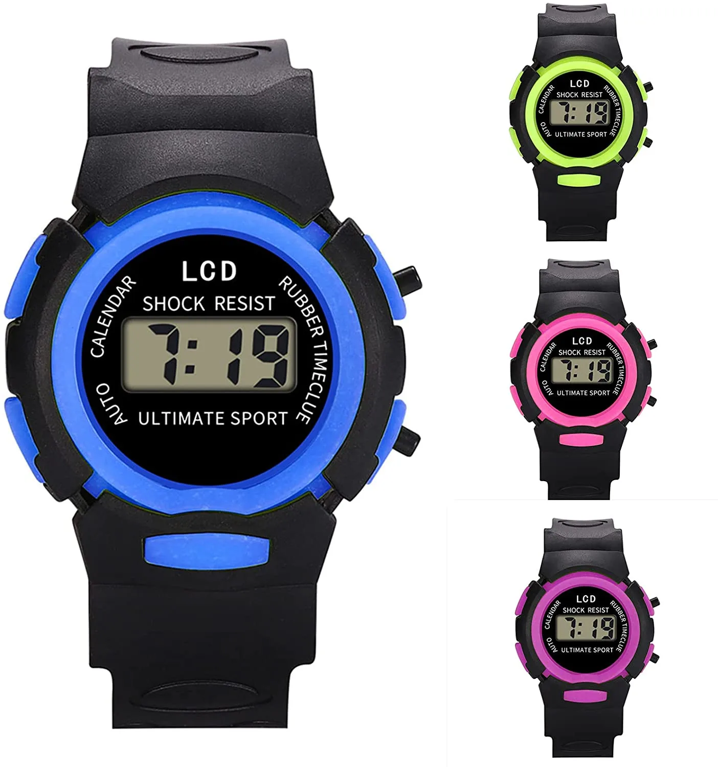 Водонепроницаемые детские часы, цифровые светодиодные кварцевые часы с будильником и датой, спортивные часы, детские наручные часы, браслет для детей, часы для детей 35 *