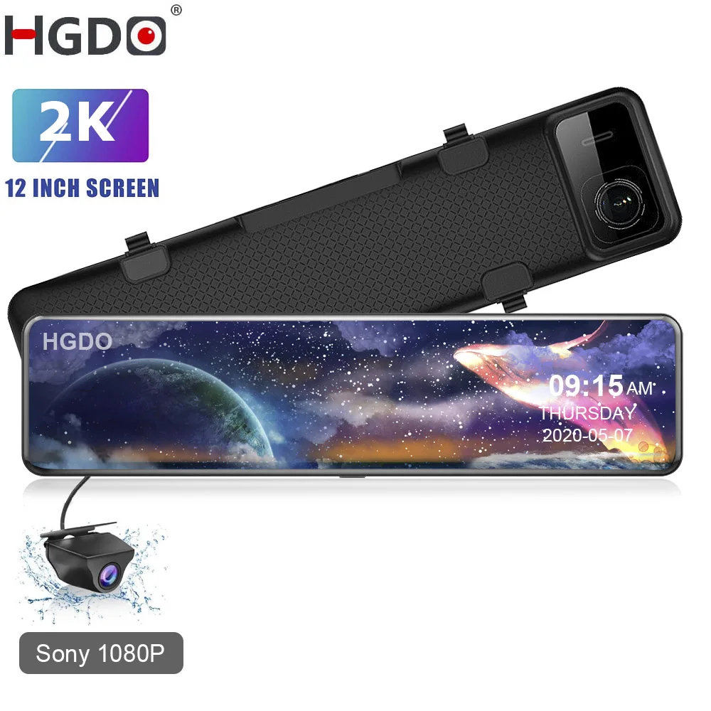 Видеорегистратор HGDO 2K, 12 дюймов, Автомобильный видеорегистратор Super HD, Hisilicon CPU, автомобильная камера, видеорегистратор на зеркало заднего вида с камерой заднего вида 1080P