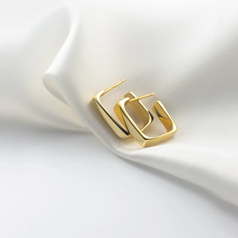 Прямоугольные геометрические серьги золотого цвета для женщин, мета...