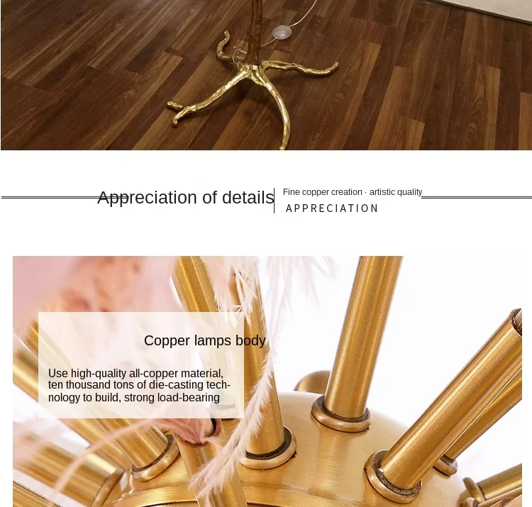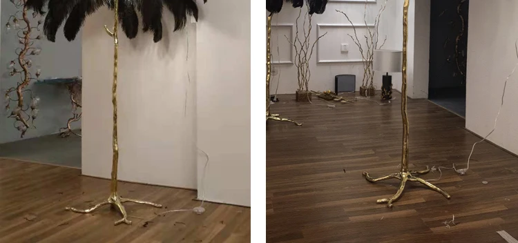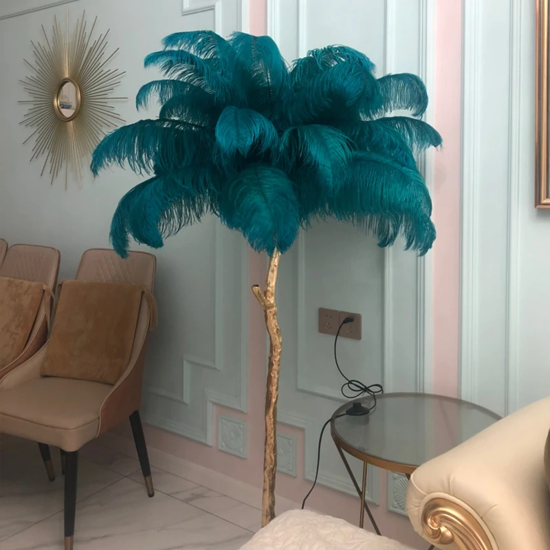 Напольная Светодиодная лампа из страусиного пера, медный полимерный...