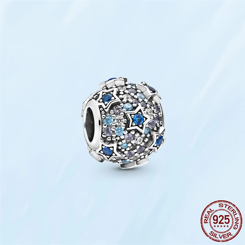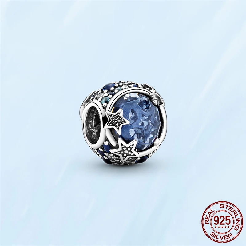 Женский браслет из серебра 100% пробы, с подвеской в виде звезд и Луны