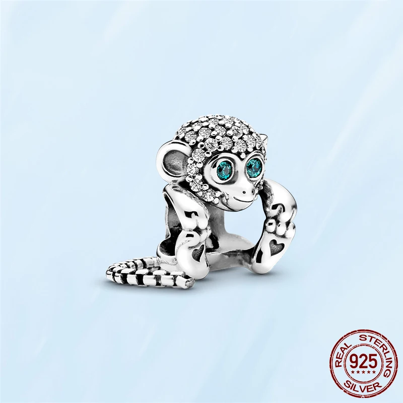 Животные, змея, слон, обезьяна, сердце, подвеска, оригинальный браслет Pandora, CZ, серебро 925, изготовление ювелирных изделий