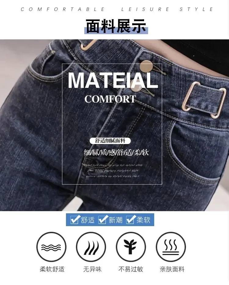 Женские джинсовые брюки на осень и зиму, эластичные прямые брюки