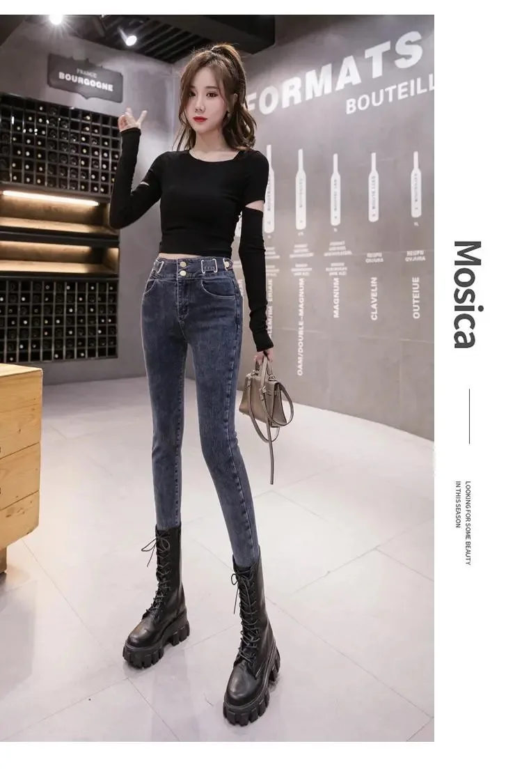 Осень 2022, джинсы, женские джинсы-карандаш, облегающие корейские с...