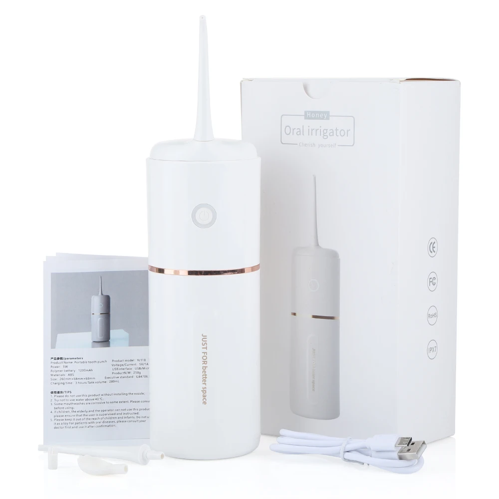 Особенности:1. Наш продукт является легким, портативным и водонепроницаемым беспроводным ирригатором для полости рта, принимает 2500 об/мин высоковольтный Пульс для решения различных проблем полости рта.2. Наши продукты доступны в трех регулируемых режимах очистки, чтобы удовлетворить различные ваши личные потребности и помочь улучшить ваше состояние полости рта.3. Распылительное Сопло-0,08 мм в диаметре, из которого импульсного струи воды может легко добраться до мертвых углов и смыть остатки пищи. Это большой помощник, который освежит ваше дыхание полости рта, тренирует десны, предотвращает карикатура зубов и болезни десен и т. Д.4. Водяной поплавок оснащен съемным резервуаром для воды большой емкости 280 мл, который не требует повторного пополнения и, безусловно, легко чистится.5. Короткое время зарядки (3 часа) и длительное время работы (45 дней) делают его более удобным для чистки полости рта в любое время во время путешествия или в бизнесе.Характеристики:Материал: АБС-пластикЦвет: белыйРазмер: 18,2*6,2*9 смВес: 330 гРазмер упаковки: 20,5*6*6,5 смИсточник питания: литиевая батарея, USB зарядкаЕмкость аккумулятора: 1200 мАчВремя зарядки: 3 часаНапряжение: 5 В/1 АМощность: 5 ВтОбъем бака: 280 млУпаковочный лист:1 * ирригатор полости рта1 * ЗАО кабель для зарядки1 * Руководство пользователя1 * упаковочная коробка
