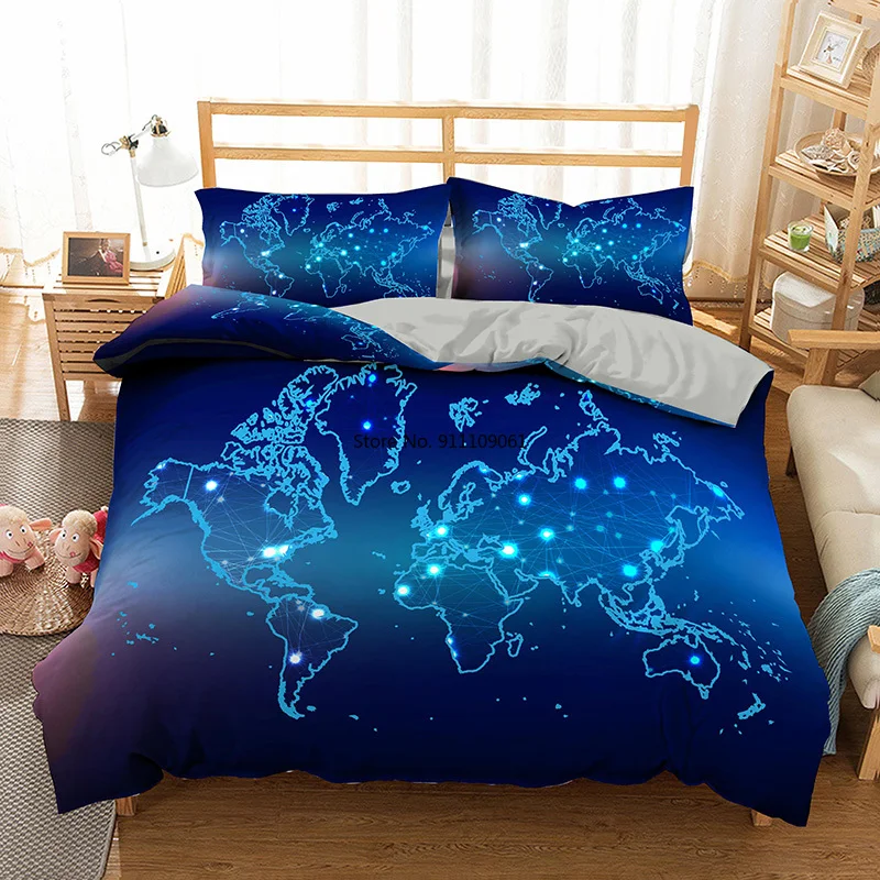 Комплект постельного белья из 3 предметов, Текстиль для дома, Детский, с изображением карты мира, Queen, King, односпальный, голубой, 220x240, мягкий, для кровати 150