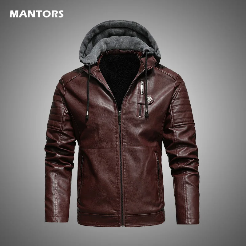 Мужская мотоциклетная куртка из ПУ кожи, на флисе, с воротником-стойкой