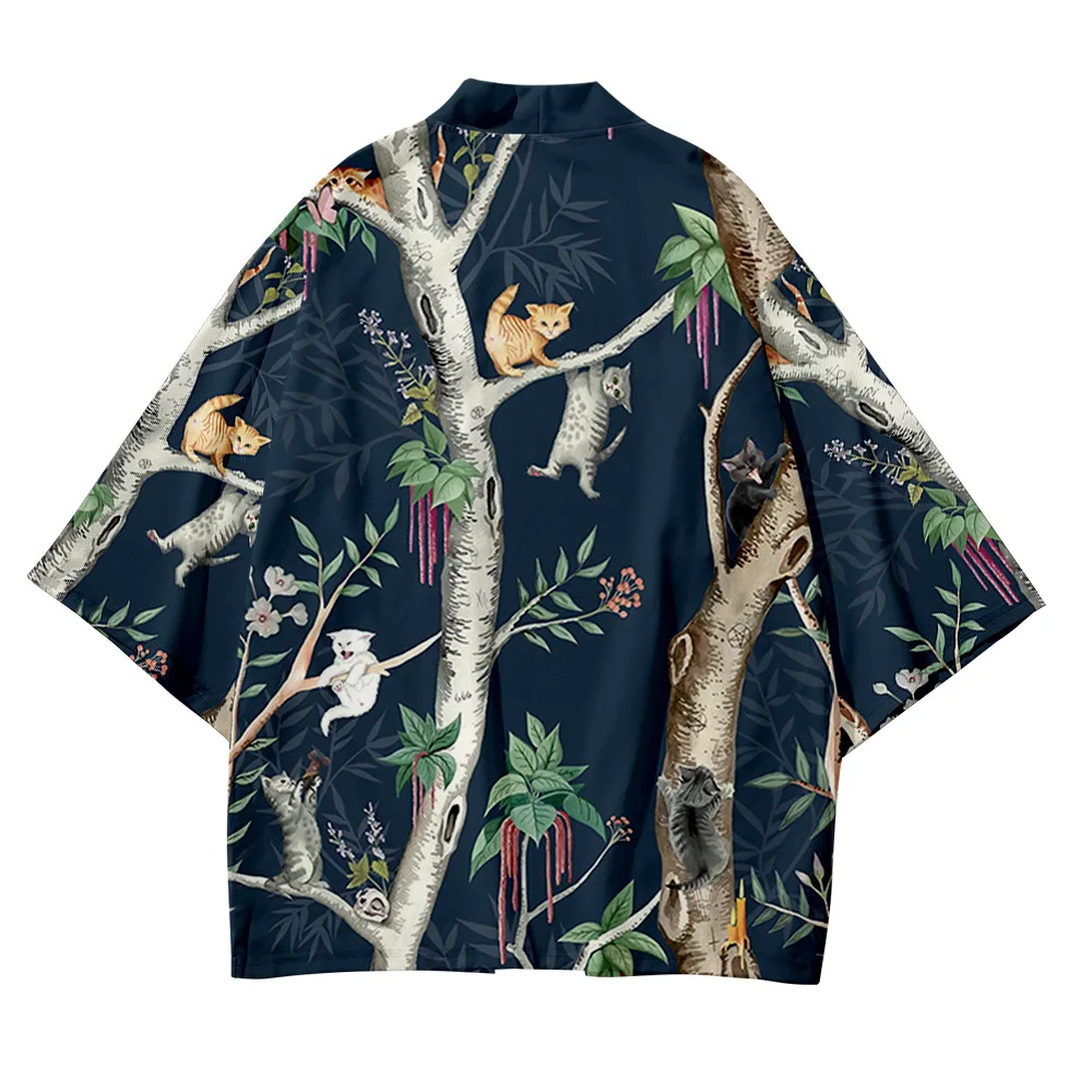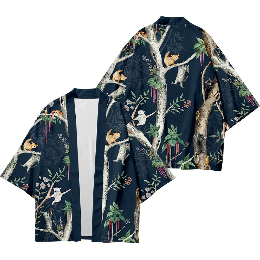 Кимоно в японском стиле Харадзюку для женщин и мужчин, кардиган с принтом милого кота, топ и штаны в стиле юката, большие размеры 6XL