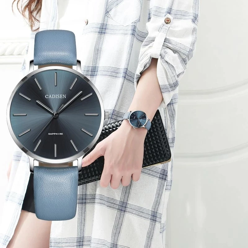 Часы наручные CADISEN женские кварцевые ультратонкие, повседневные брендовые модные ультратонкие водонепроницаемые, с кожаным ремешком, 2021
