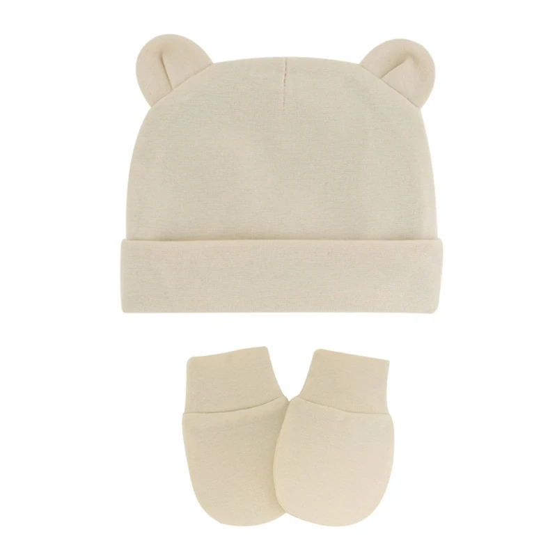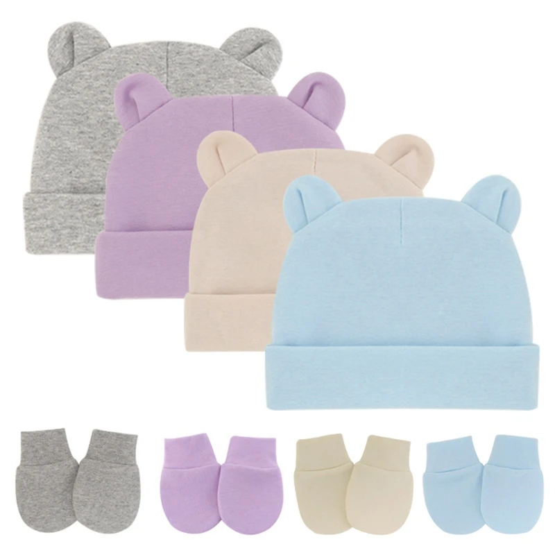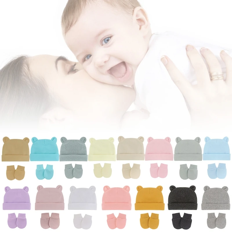 Хлопковые облегающие шапки для новорожденных, однотонные яркие эластичные теплые шапочки и перчатки для младенцев