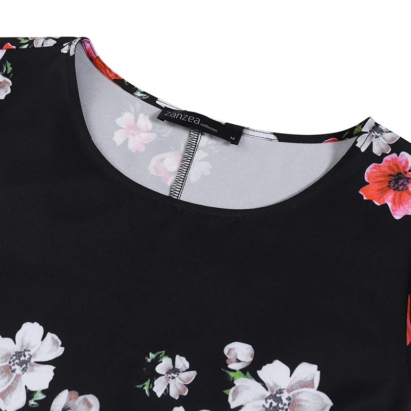 Платье ZANZEA женское средней длины с цветочным принтом, винтажный Повседневный пляжный сарафан с круглым вырезом и коротким рукавом, вечерняя одежда, на лето