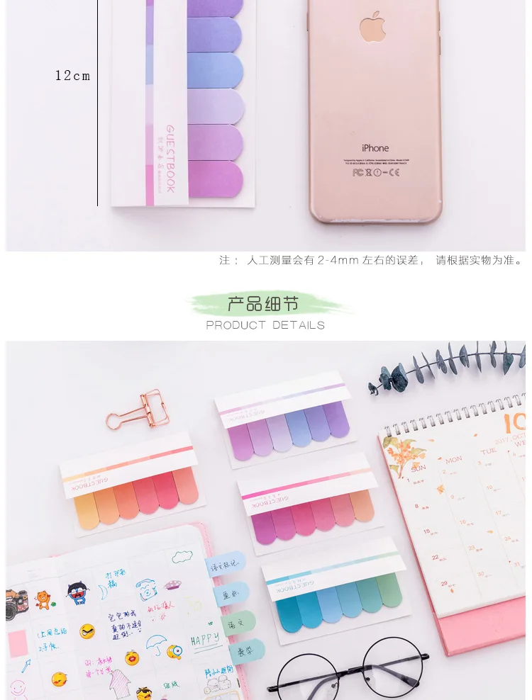 Канцелярские товары в Корейском стиле, 120 листов, 6 цветов, клейкие заметки с градиентом, милый планер, строительные принадлежности для школы и офиса
