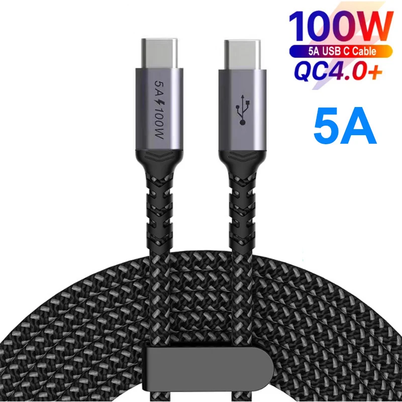 USB C к USB C кабелю 100 Вт, USB Type C 5A быстрая зарядка, нейлоновый Плетеный зарядный шнур, совместимый с MacBook Pro, Galaxy S21 S20