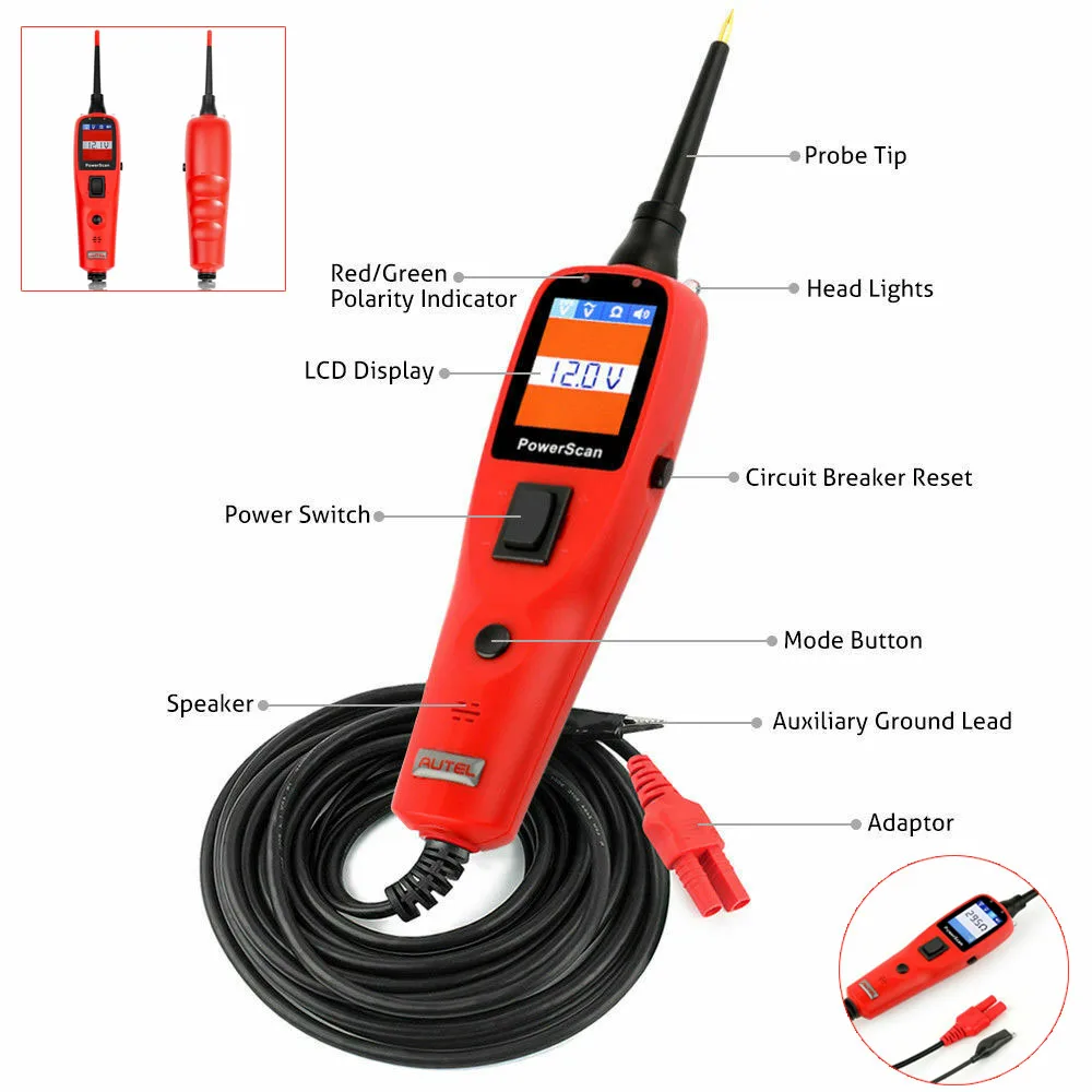 Инструмент PowerScan является самым революционным тестером цепи на сегодняшний день. С AVOmeter, испытательный светильник, встроенный светильник вспышки, индикатор короткого замыкания, реле/тестер компонентов, тестер непрерывности и плохой индикатор заземления, сканирование мощности действительно является конечной мощностью и доступностью, позволяет пользователям проверять схемы за один шаг. Абсолютно необходимо, чтобы каждый техник искал быстрое и точное решение для диагностики электрической системы.