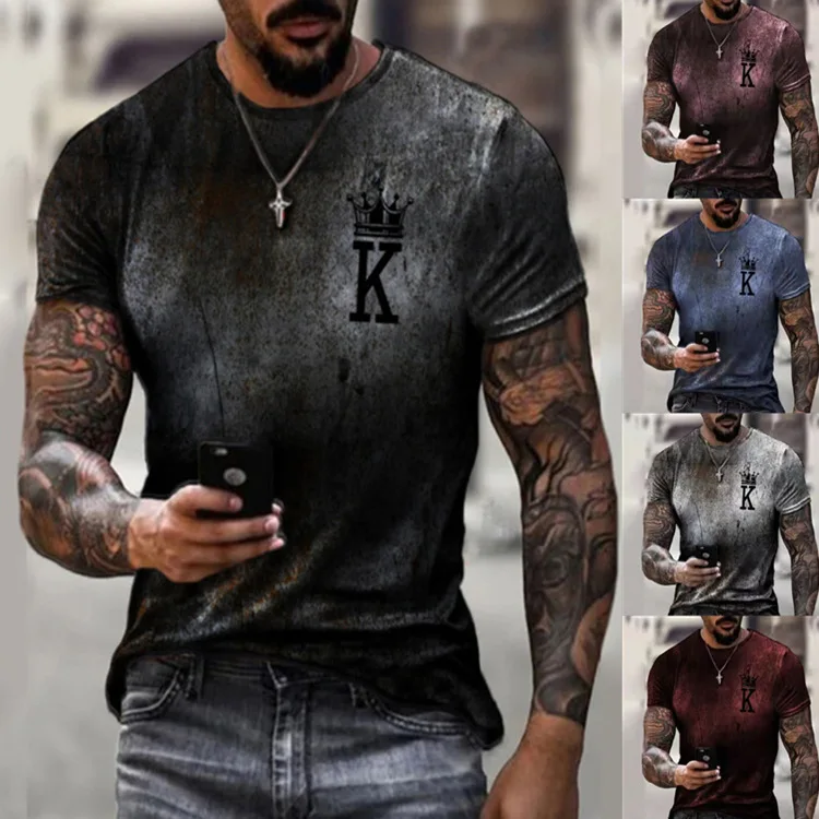 Мужская футболка с коротким рукавом, свободная футболка с круглым вырезом и градиентным принтом, в европейском и американском стиле, лето 2021
