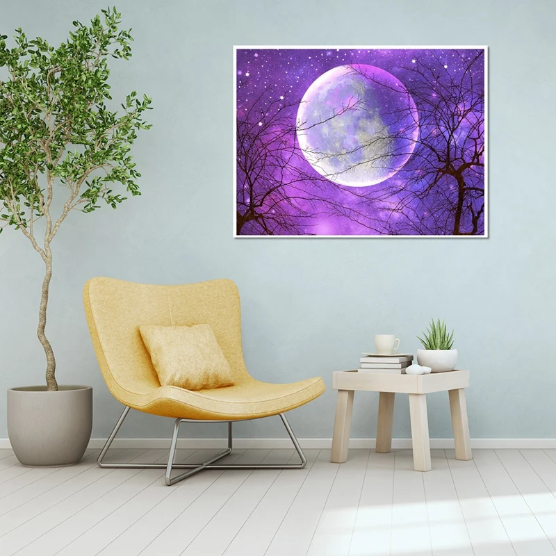 Набор для алмазной живописи BMBY, круглый набор для алмазной мозаики сделай сам, украшение для гостиной, кухни, фиолетовая луна