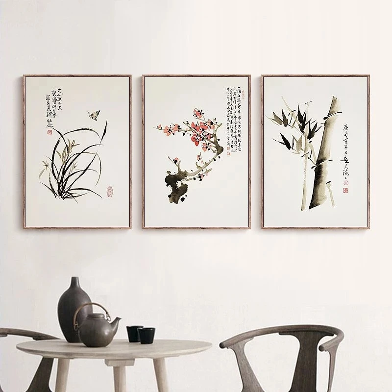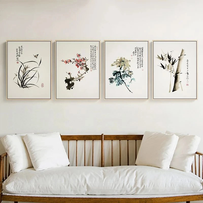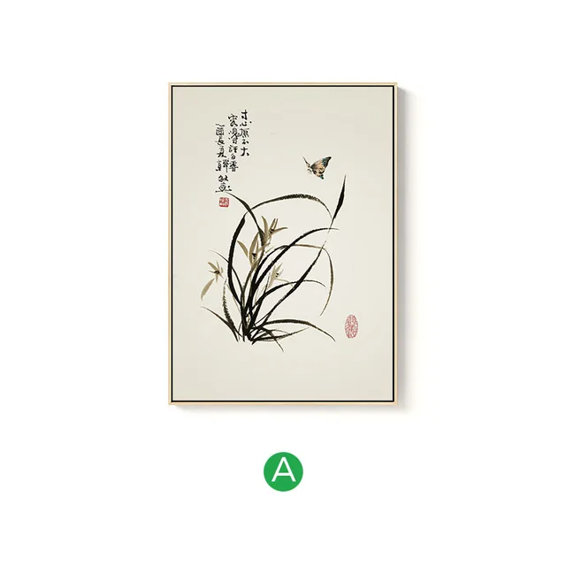 Классическая китайская каллиграфия на холсте, винтажная живопись, домашний декор, постеры с цветами орхидеи, зелеными растениями, картина на стену из бамбука