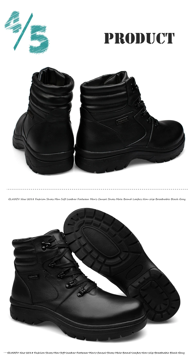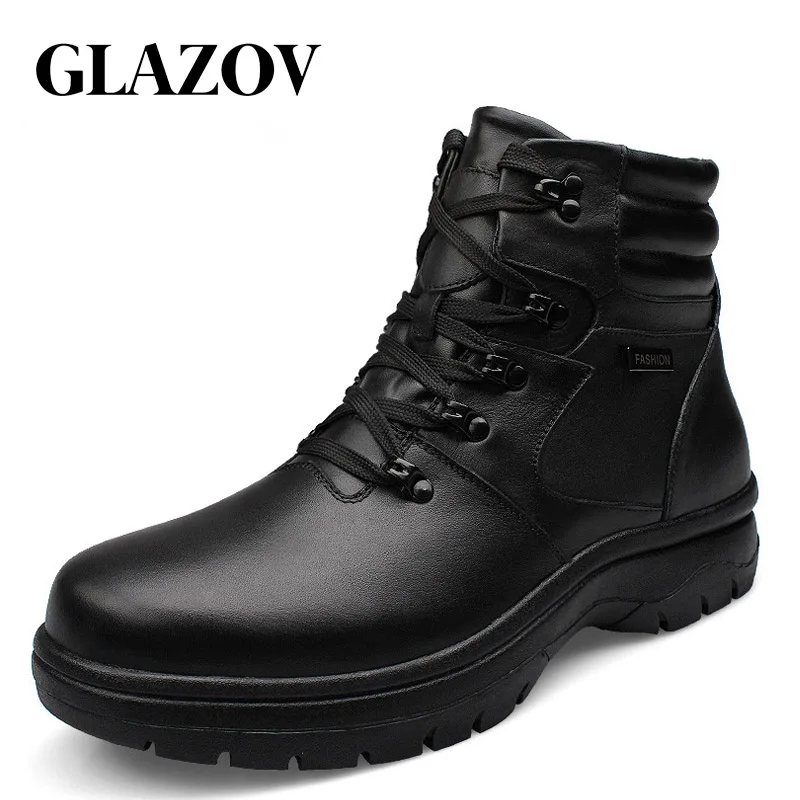 Мужские кожаные ботинки, повседневные ботинки, модные теплые ботинк...